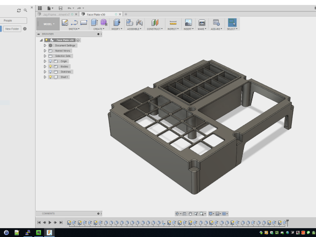 So, from whatever Google results I can find, which is mostly pictures of both actual units and models, and whatever else I can glean, I have started the process of rendering a complete DSKY design in Fusion 360. My objective is to 3D print as many of the parts as possible into a credible design, as accurate as possible in external dimensions and features, but with modern supporting electronics and keyboard to be the front-end for the open source AGC emulator. I'm about to reach out to Fran, to gauge her willingness to share some of the dimensions she captured when handling a real AGC for her project. And if her project pans out, I'm hopeful that her numeric display would fit into my DSKY. For the moment, though, I plan on building the numeric display using off-the-shelf seven-segment LED displays behind 3D printed masks to achieve the proper digit size and shape. Although the original AGC/DSKY was largely made from die-cast parts, I'm hoping some effective use of paint will make it look close to original.